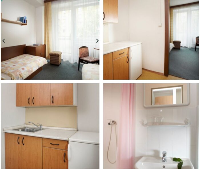 - À noter : La cuisine ne comprend pas de casseroles, vaisselle ou couverts. Vous pourrez acheter ces articles directement à l’hypermarché Kaufland, tout près de la résidence. Si vous le souhaitez, vous pouvez également vous organiser avec votre colocataire pour partager ou faire vos achats ensemble.